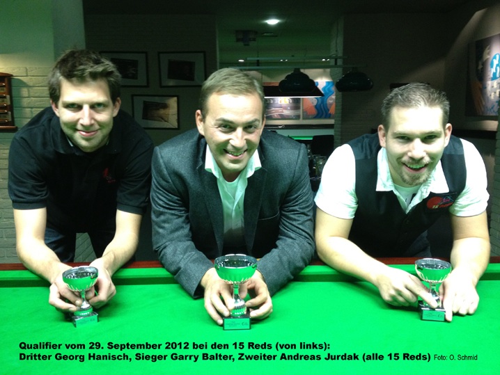 Schöner Erfolg für die 15 Reds: Das erste ASL Doppel-Turnier der neuen Saison wurde Sonntag (7. 10.) bei den Bulls in Salzburg von Sebastian Hainzl/Andreas Jurdak gewonnen. Sebastian und Andreas gewannen im Finale glatt 3:0 gegen Peter Pertiller/Alexander Stadler (Bulls). Platz 3 sicherten sich Christian Hochmayer/Emanuel Stegmeier (FBC/ABC). Das Turnier-Highbreak erzielte Vladislav Arion mit einer 59.