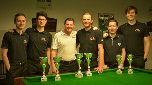 Sowohl mit einem Respektabstand noch Oben, als auch auf das restliche Teilnehmerfeld, war Max Schmölzer mit 349 Punkten auf dem 3. Platz. Max erzielte ein 25er Break. Auf Platz 4 war Gerhard Minich mit 215 Punkten. Der 5. Platz ging an Stefan Koulichev mit 198 Punkten. Platz 6 und 152 Punkte gehörten Max Thurner. Im Kampf um den 7. Platz setzte sich Wolfgang Edelmann mit 133 Punkten durch. Und knapp dahinter, auf dem 8. und letzten Platz, war diesmal Gabriel Pete mit 120 Punkten. --- Mit 415 Punkten gewann Florian Toth den 15-Reds-Clubabend am vergangenen Mittwoch (17.4.). Florian spielte die höchste Runde von 115 Punkten und Breaks von 27, 26 und 21 Punkten. Im Duell um Platz 2 konnte sich Julien Simpkins mit 309 Punkten durchsetzen und somit sein bestes Resultat bei einem Clubabend erreichen. Mit 295 Punkten war Matthias Ginther nur knapp dahinter und belegte den 3. Platz. Matthias spielte das höchste Break des Abends mit 31 Punkten. Auf Platz 4 war Max Thurner, der ein 30er-Break erzielte, mit 172 Punkten. Der 5. Platz ging an Gerhard Minich mit 140 Punkten. Mit 106 Punkten machte Gabriel Pete diesmal das Schlusslicht und belegte Platz 6. Danke an die Mitglieder fürs Kommen & bis zum nächsten Mal! - Florian Toth ASL: Raster für Doppelturnier im BLZ Wien