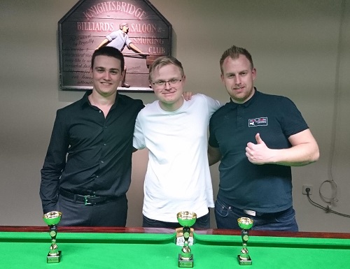 In den Halbfinali hatten sich Florian gegen Vladislav, der vorher Tajmeet Grover und Thomas Janzso (beide HSEBC) bezwungen hatte, mit 4:0 und einem 72er-Break sowie Jérôme gegen Philipp Koch (HSEBC) mit 4:2 – nach 0:2-Rückstand und einer 61 im letzten Frame – durchgesetzt. Im Spiel um Platz 3 hatte Philipp gegen Vladislav nach einer fast vierstündigen Partie knapp die Nase vorn: 4:3.