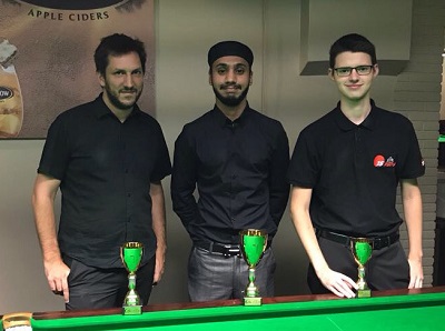 ...Challenge Ost: 2. Christopher Posch, 1. Tajmeet Grover, 3. Florian Toth... Florian besiegte im kleinen Finale Benjamin Stoppacher (Snock) nach 0:1-Rückstand mit 2:1. Im Halbfinale hatte sich Florian Christopher Posch (BSVB) 1:3 geschlagen geben müssen. Das Finale gewann Tajmeet Grover (HSEBC) gegen Christopher mit 3:2. Das höchste Break - eine 45 - erzielte mit Vladislav Arion ebenfalls ein 15-Reds-Mitglied. > ASL Challenge Ost: ERGEBNISSE Beim Grand Prix in Wels bzw. Salzburg ging der Turniersieg bereits zum 7. Mal in Folge an Florian Nüßle (Bulls). Er gab im ganzen Turnier lediglich zwei Frames ab und schlug im Finale Oskar Charlesworth (HSEBC) 4:1. Dritter wurde Markus Pfistermüller (1. UWBC), während Serbest Hussein (TSG) mit einer 74er-Clearance das höchste Break des Turniers erzielte. Alle drei 15-Reds-Teilnehmer - Alexander Trinkl, Bernhard Wallner und Daniel Göschl - verloren leider bereits in der ersten Runde (Achtelfinale). > ASL Grand Prix: ERGEBNISSE Die 15 Reds gratulieren herzlichst! Aktualisiert (Montag, den 04. September 2017 um 08:10 Uhr) |