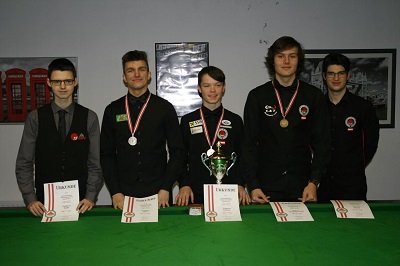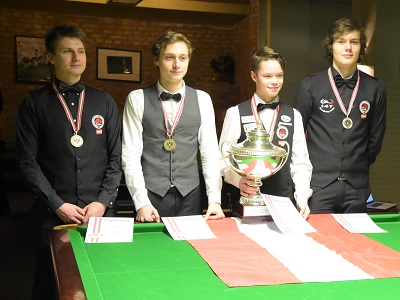 Aktualisiert (Freitag, den 27. Januar 2017 um 11:17 Uhr) ÖSM Snooker 2016: Florian Nüßle holt Titel, Thomas Janzso wird 3.!Der neue Staatsmeister Snooker Allgemeine Klasse heißt Florian Nüßle (TSG)! In beeindruckender Manier hat der topgesetzte Florian dieses Wochenende (21.-22. 1.) das Turnier in unserem Clublokal Köö 7 gewonnen. Im gesamten Turnierverlauf gab der erst 15-jährige Florian lediglich einen einzigen Frame ab. Für die 15 Reds gab's auch erfreuliche News: Thomas Janzso wurde Dritter!