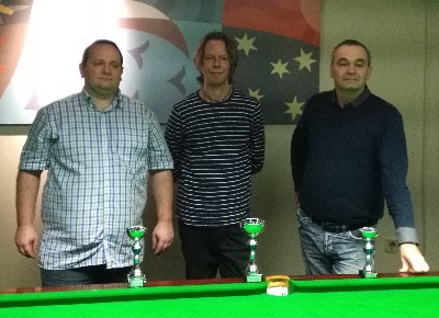 ...ASL Qualifier: 2. Rainer Bittner, 1. Albert Krebs, 3. Otto Dreicher... Im Spiel um Platz 3 hatte Otto Dreicher gegen Benjamin Stoppacher ebenfalls mit 2:1 das bessere Ende für sich. Otto (gegen Rainer) und Benjamin (gegen Albert) hatten zuvor ihre Halbfinali jeweils mit 0:2 verloren. Am Turnier nahmen 16 Spieler(innen) teil. Die ERGEBNISSE sind in der ÖSBV-Online-Sportdirektion abrufbar. Die 15 Reds gratulieren! Aktualisiert (Sonntag, den 20. November 2016 um 16:14 Uhr) Clubabend: Florian Toth gewinnt mit 352 PunktenMit einer Runde von 101 Punkten, in der er ein 32er-Break, eine 27er-Clearance und noch ein 20er-Break spielte, fixierte Florian Toth seinen Sieg beim Clubabend am Mittwoch (16.11.).
