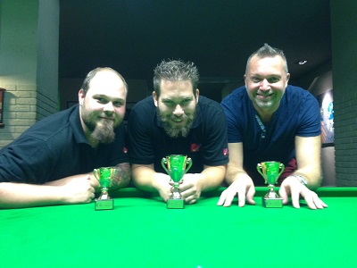 ...Team Austria: Dominik Scherübl, Andreas Ploner, Paul Schopf, Christian Hochmayer, Team Austria, das auch mit Christian Hochmayer, Hans Nirnberger, Florian Nüßle, Andreas Ploner und Paul Schopf antrat, lag nach dem ersten Spieltag noch knapp hinter Deutschland, am Ende gab's aber einen 5-Punkte-Vorsprung: Österreich hatte 30 Siege und 15 Niederlagen, Deutschland hatte 26-16, und die Schweiz 11-36. Die Spielerwertung gewann der deutsche Jugendspieler Michael Schnabel mit 10 Siegen und 0 Niederlagen. Dominik teilte mit 5 Siegen und 1 Niederlage den 5. Rang mit dem deutschen Ex-Main-Tour-Profi Patrick Einsle. Die 6 Spieler jeder Nation spielten 2 Frames (ein 1:1-Unentschieden war somit möglich) gegen alle Spieler der beiden anderen Nationen. Innerhalb der Altersklassen wurden auch Doppelpartien mit Stoßwechsel gespielt. Mehr Info gibt's HIER auf der Website des ÖSBV. Die 15 Reds gratulieren Dominik und Team Austria herzlichst! ASL: Andreas Jurdak gewinnt Qualifier bei den 15 RedsAndreas Jurdak hat Samstag (10. 9.) im Köö 7 den 4. Austrian Snooker League Qualifier der Saison 2016 gewonnen. Im Finale schlug Andreas Andreas Gugler, nach Verlust des Eröffnungsframes, mit 2:1.