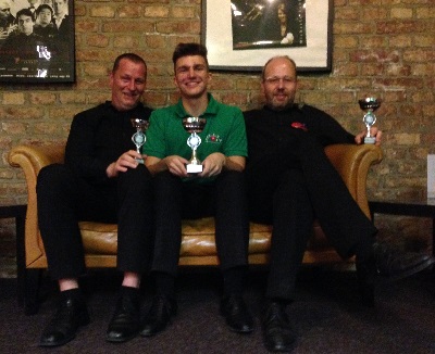 ...Challenge Ost: 3. Christian Kasparek, 1. Patrick Stift, 2. Bernhard Wallner... Im Halbfinale hatte sich Patrick in einem hart umkämpften Match gegen seinen HSEBC-Vereinskollegen Christian Kasparek nach 1:2-Rückstand mit 3:2 durchgestetzt. Im anderen Halbfinale war Bernhard mit 3:1 für Emanuel Stegmeier (ABC) zu stark gewesen. Im Spiel um Platz 3 gewann Christian nach Verlust des Eröffnungsframes mit 2:1 gegen Emanuel. Das höchste Break des Turniers erzielte Elias Kaptiany (HSEBC) mit einer 61. Das komplette ERGEBNIS ist in der ÖSBV-Online-Sportdirektion abrufbar. Die 15 Reds gratulieren herzlichst! |