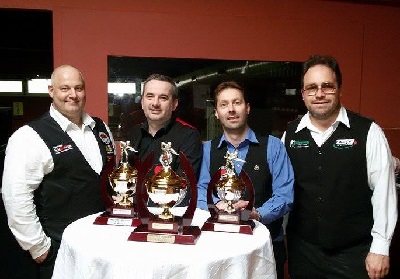 ...ASL U21: P. Koch (4.), F. Nüßle (2.), D. Scherübl (1.), O. Charlesworth (3.), F. Toth (5.)... Auch Florian Nüßle (TSG) und Oskar Charlesworth (HSEBC) schafften je drei Siege. Dominik und Florian hatten sogar ein identisches Frameverhältnis (7:3). Da Dominik die direkte Begegnung 2:1 gewonnen hatte, wurde er Erster und Florian Zweiter. Oskar (Frameverhältnis 7:4) holte sich den dritten Platz. Dominik zeichnete mit einer 40 auch für das höchste Break des Turniers verantwortlich. Alle ERGEBNISSE sind in der ÖSBV-Online-Sportdirektion abrufbar. In der U21-RANGLISTE (PDF) bleibt Florian die Nummer 1 vor Oskar, weil Dominik zwei Plätze gewann und nun an dritter Stelle liegt. Die 15 Reds gratulieren herzlichst! Aktualisiert (Freitag, den 15. April 2016 um 16:14 Uhr) ASL: Turnierraster für Grand Prix in Innsbruck