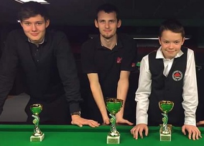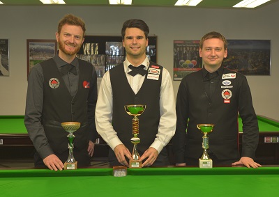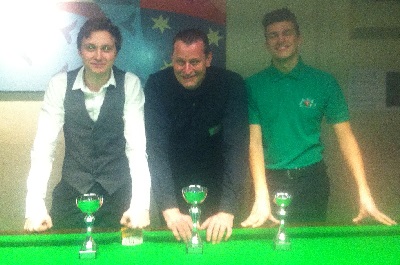 ...ASL Challenge Ost: Elias Kapitany (2.), Christian Kasparek (1.), Patrick Stift (3.)... Der Turniersieg ging an Christian Kasparek (HSEBC), der das Finale gegen Elias Kapitany (HSEBC) 3:1 gewann. Auch der dritte Platz war für den HSEBC dank eines 2:0-Erfolgs von Patrick Stift über Wallner. Unser Club stellte genau die Hälfte der 20 Teilnehmer(innen); 4 schafften den Sprung ins Viertelfinale. In der ÖSBV-Online-Sportdirektion sind die kompletten ERGEBNISSE abrufbar. Die 15 Reds gratulieren herzlichst! Aktualisiert (Mittwoch, den 09. März 2016 um 10:29 Uhr) ASL: Dominik Scherübl gewinnt U21-Turnier in GrazUnser Clubmitglied Dominik Scherübl hat Samstag (27. 2.) beim TSG in Graz das erste Austrian Snooker League U21-Turnier der Saison 2016 gewonnen. Im Finale gewann Dominik 3:1 gegen Florian Nüßle (TSG), und erzielte in dieser Partie mit einer 51 auch das höchste Break des Turniers.