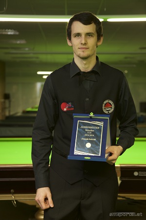 Therese gewann den in einer Round-Robin-Vierergruppe ausgetragenen Damenbewerb ohne Frameverlust. Es war ihr zweiter Titel nachdem sie auch 2012 gewonnen hatte. Den zweiten Rang sicherte sich Barbara Bitriol (ESC) vor Corinna Pavitsich (ESC), während Hanna Schneider (15 Reds) sieglos blieb. Mit einer 20 erzielte Corinna das höchste Break des Turniers. In einem spannenden U21-Bewerb setzte sich Dominik im Endspiel mit 3:2 gegen Markus Pfistermüller (1. UWBC) durch, und erzielte in dieser Partie mit einer 55 das höchste Break des Turniers. Damit hat Dominik erstmals den U21-Titel geholt, nachdem er 2010 bereits U16-Meister geworden war. Den dritten Platz teilten sich Oskar Charlesworth (HSEBC) und Manuel Pomwenger (Bulls). Die stolzen 15 Reds gratulieren herzlichst! Beim Bericht auf der ÖSBV-Homepage gibt's mehr Bilder. Ö(ST)M 2014: Ergebnisse Damen | Ergebnisse U21 [unter "Turniere"] Aktualisiert (Mittwoch, den 04. Februar 2015 um 17:59 Uhr) Schopf gewinnt ÖStM Snooker, Hainzl (mit Century!) und Balter 3.